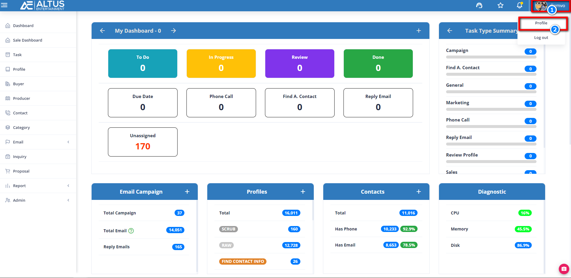 Login BACKOFFICE with the user role having permission for the profile/user page.
